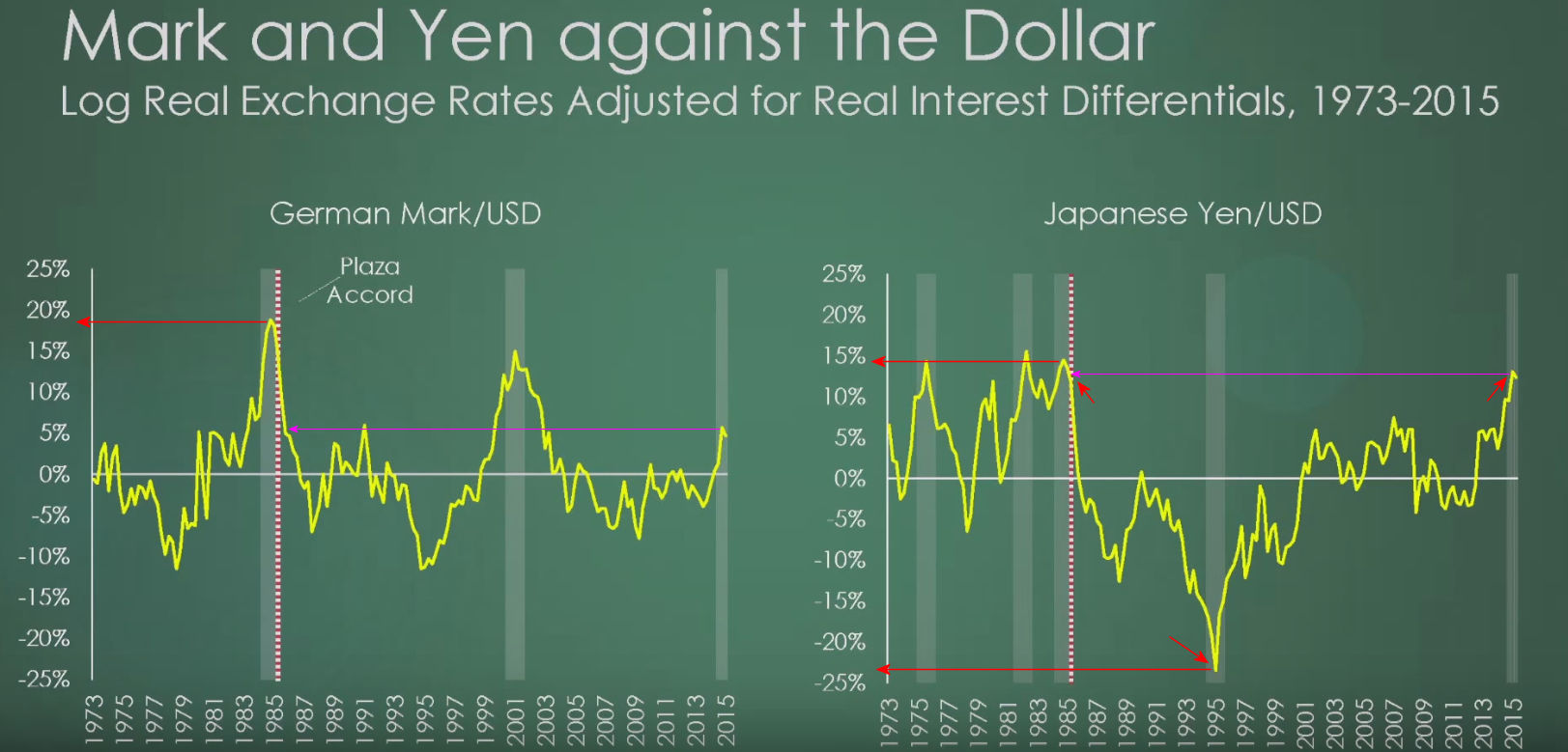 der Plaza Accord war nicht der wesentliche Grund,sondern die extreme Überbewertung vom US-Dollar gegenüber der German-Markt