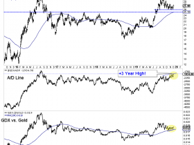 Definitiv hat GDX die Performance von Gold übertroffen. Das Verhältnis von GDX zu Gold schloss am Dienstag bei einem Zweimonatshoch. Beachten Sie, dass dies während einer Korrektur für GDX geschieht....
