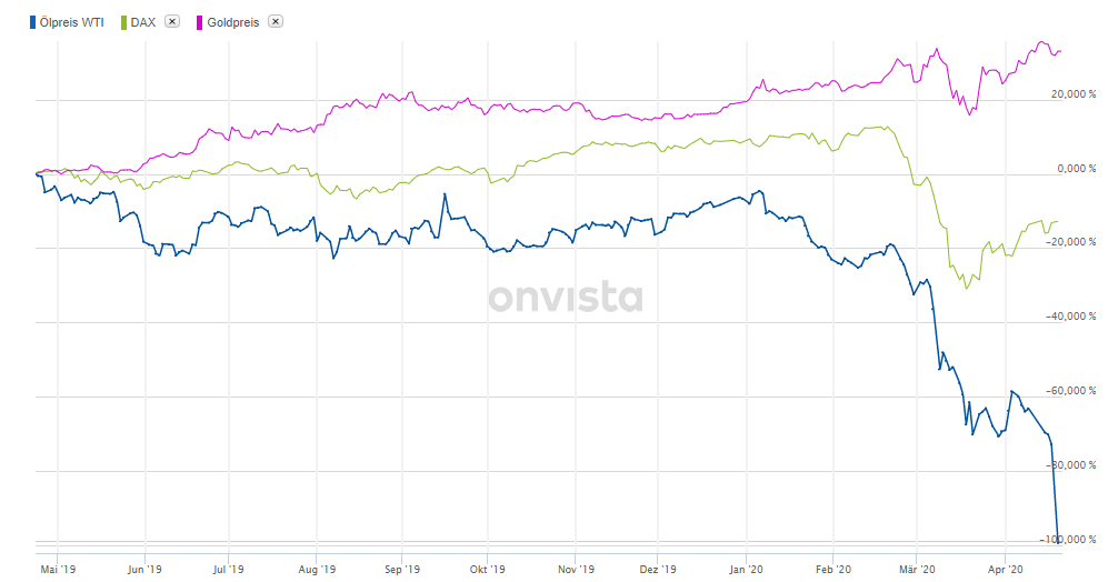 Der Ölpreis fällt seit Wochen aus bekannten Gründen. Dagegen hielt sich Gold recht stabil. Dies auch berechtigt als Anker im Chaos der wilden ZB Aktivitäten und Wirtschaftskrisen.