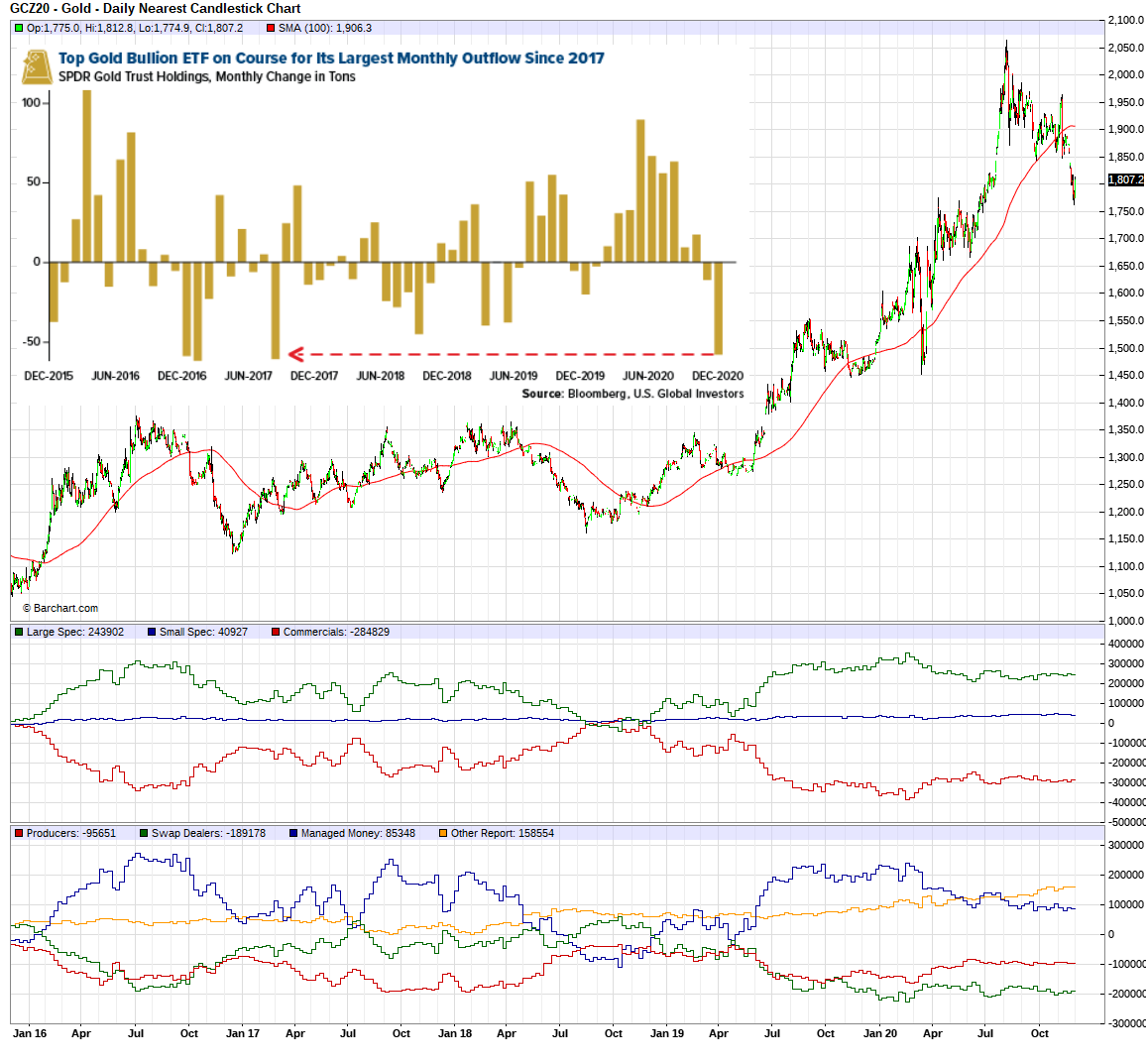 Die letzten großen Abflüsse dort könnten ganz wesentlich den starken Preisrückgang des Goldes gefördert haben, der heute vermutlich endet: