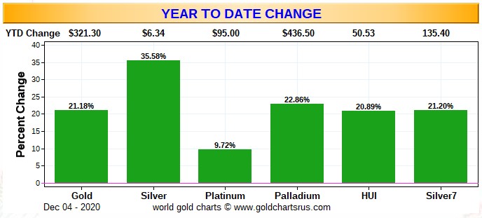 YTD eine Übersicht der 4 wichtigen Edelmetale und 2 Minenindices für Gold und Silberaktien. Wie mehrfach im Depotthread dargestellt, sind die Hebel der Minen sehr klein vs den Edelmetallen gegenüber früheren Jahren.