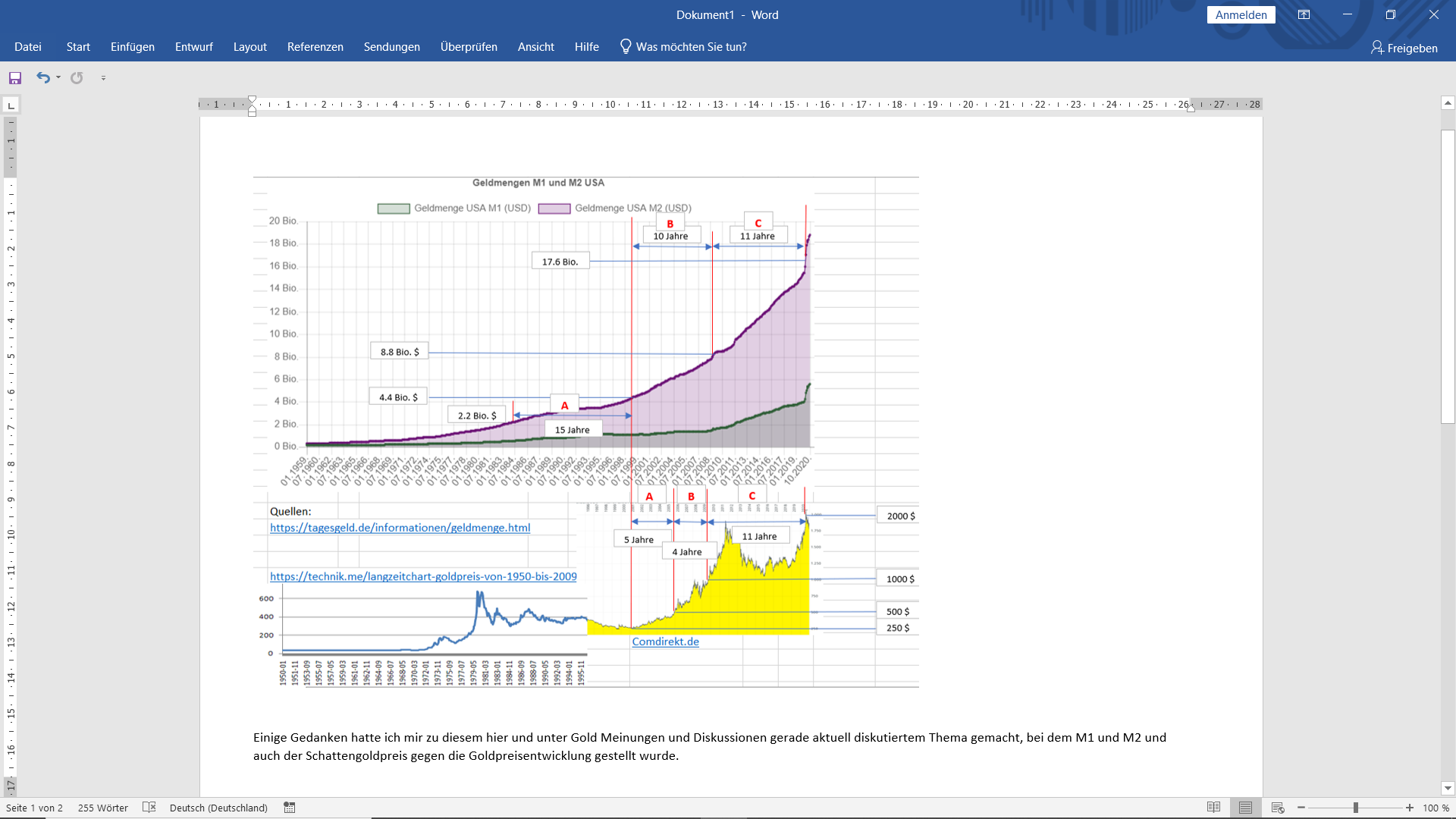 • Einige Gedanken hatte ich mir zu diesem hier und unter Gold Meinungen und Diskussionen gerade aktuell diskutiertem Thema gemacht, bei dem M1 und M2 und auch der Schattengoldpreis gegen die Goldpreisentwicklung gestellt wurde.