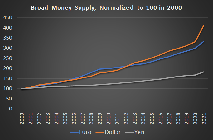 edit 3: hier mal, wie ich finde sehr wichtiger Chart zum broad money [also dem Geld was bei den Normalos ankommt]...man sieht auch sehr schön den Unterschied zu Japan