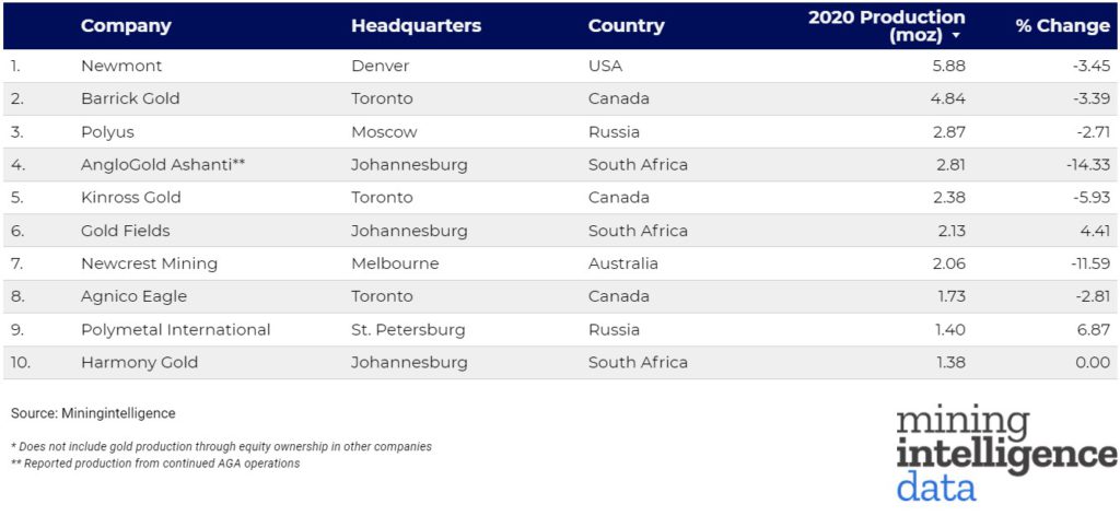 Auf der Grundlage von Daten des Schwesterunternehmens MiningIntelligence haben wir eine Liste der führenden Goldminenunternehmen auf der Grundlage ihrer Produktion im Jahr 2020 erstellt..."