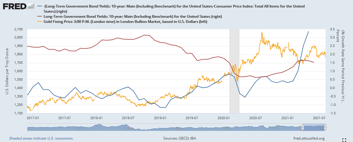 Blau ist, Achtung aufpassen...10 y. T-Notes minus offiz. CPI, das Ganze wegen der Übersichtlichlkeit *(-1), also reale Rendite. (also nur Vorzeichen gewechselt)