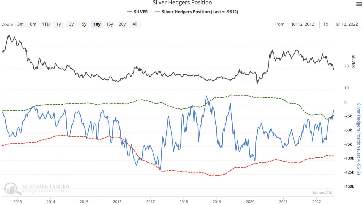 SILBERBERICHT EXTREM BULLISCH: Die kommerziellen Händler sind jetzt in einer der bullischsten Positionen des letzten Jahrzehnts