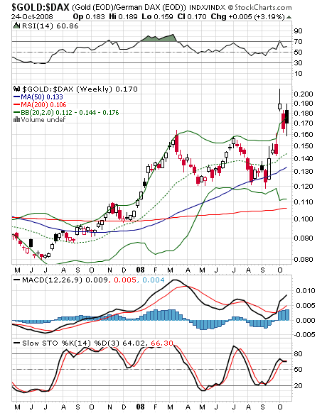 Der heftige Kursverlust der deutschen Bluechips gab mir Veranlassung, mal Gold mit dem DAX zu vergleichen: