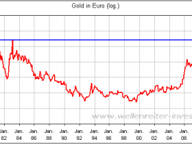 "Drei technische Gründe sprechen für ein Comeback des Goldpreises: Der Chart Goldpreis in Euro, die Stärke des Goldpreises zum Rohstoffindex sowie die Gold/Dow-Ratio.Erstens: Der Goldpreis in Euro befindet sich nahe des im Jahr 1983 erzielten Allzeithochs.