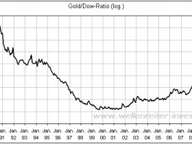 Gold entwickelt sich derzeit besser als fast alle Leitaktienbörsen dieser Welt. Auch die oben dargestellte Ratio Gold zum Dow Jones Index hat in diesen Tagen ein neues Dekadenhoch erklimmen können. Anzeichen dafür, dass sich dieser Trend umkehrt, sehen wir nicht.Fazit: Der Goldpreis dürfte sein Potential noch nicht ausgereizt haben. Wilde Preisziele interessieren die meisten – auch institutionellen - Anleger weniger als der Umstand, dass physisches Gold in wirtschaftlich schwierigen Zeiten eine solide Grundsicherung darstellt.
