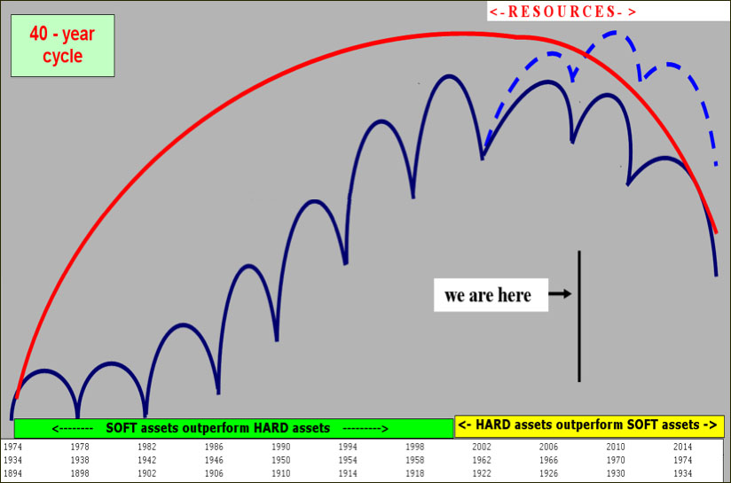 If history is any guide, the areas of the market that should do well during the next five years are Gold and Gold stocks (hard assets), just as in the 1929-1935 and 1974-1981 periods.
