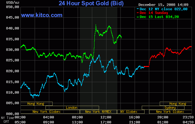 • Sind das schon die Panik-Käufe des vermeintlichen "Big Money", das von Mr. Madoff jahrelang verarscht wurde und nun die Hosen voll und von den Hedge Fonds genug hat? Alle Edelmetalle schiessen im frühen Handel hoch, der USD wird erstmal kräftig abverkauft. Das wird interessant im europäischen und US-Handel, weil ansonsten in Asien keine wirklich wichtigen Impulse gesetzt werden.