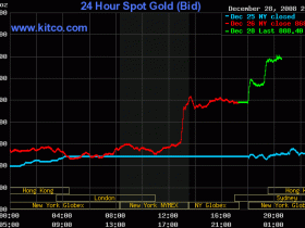 Am 26. 12. haben die US-Börsen zwar geöffnet, doch für gewöhnlich sind die Umsätze winzig. Das dürfte auch für die Edelmetallmärkte zutreffen, sodass schon kleinere Transaktionen grössere Kursbewegungen auslösen können. Der HUI läuft ja auch davon - da müsste man mal einen Blick auf das tatsächliche gehandelte Volumen werfen.