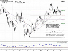 "“While capped by $900, the risk is for further weakness to a swing target near $845, or even a measured move at $805,” wrote Kotick. “In the bigger picture, we are holding onto our view of a move to $1,200, though this is now likely a story for the second half of 2009.”