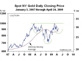 "Börse Go - New York (BoerseGo.de) - Der Preis für die Feinunze Gold fällt um 14,90 Dollar und notiert zum Handelsschluss bei 893,30 Dollar. Händler begründen den größten Tagesverlust für das Edelmetall innerhalb der letzten drei Wochen mit der Sorge, dass die Schweinegrippe die Erholung der Weltwirtschaft verzögern und gleichzeitig zu einer sinkenden Nachfrage nach Gold führen könnte.