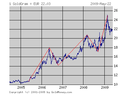 Voraussetzung dazu ist, daß der Goldpreis in $ schneller steigt, als der $ fällt. =) Mal sehen.....