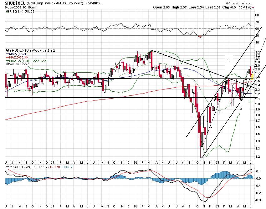 HUI auf Eurobasis als Wochenchart - mal rumgespielt, sieht auch ganz vielversprechend aus. Natürlich sieht das Depot alt aus, wenn man zu HUI-ATH-Zeiten Microcaps im EM-Bereich gekauft hat.