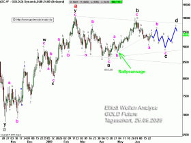 Deine Überlegungen sind insoweit bemerkenswert, als sie von der auch hier, ohne Charts, vertretenen Einschätzung von Prechter stehen, die von starkem Fall des US Goldes in Richtung 500$ ausgehen.