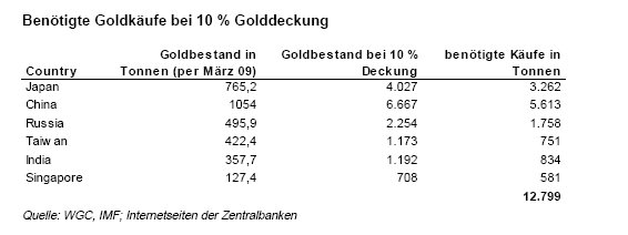Ausgerechnet die mit Abstand größten Gläubiger der Fiat- Dollar- Gebirge, Japan und China, haben den größten Gold - Nachholbedarf....