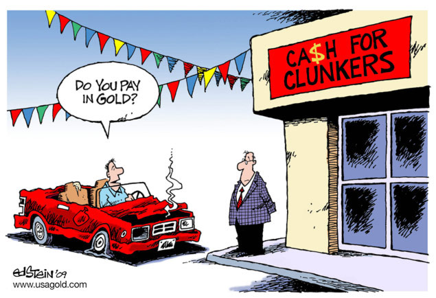 "Cash For Clunkers" = Abwrackprämie, Bargeld für Schrottkarren.http://news.goldseek.com/GoldSeek/1249408800.php
