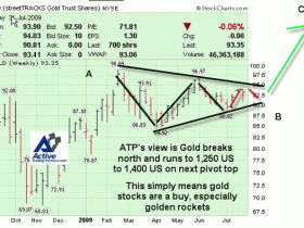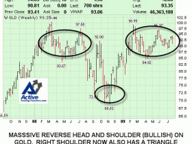 These weekly charts here are both outlining what I believe is a near term explosive move to the upside. This will kick off the sentiment shift to bullish, and eventually after the five year window is over around 2014, extremely bullish...."