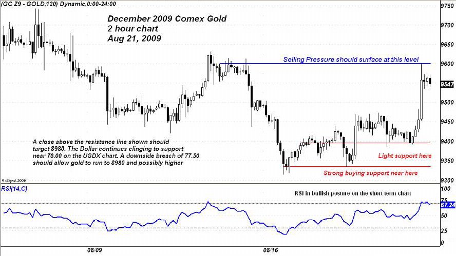 Ergänzend zu dem vorherigen Langfristchart ein Kurzzeitchart von Dan Norcini und der Wochenabschluß -- auch gut aussehend.