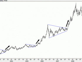 The last time we had such a nicely formed triangle in the gold market was during the 2006/2007 consolidative period. When the breakout eventually came, it resulted in a 50% gain (more than $300)...."