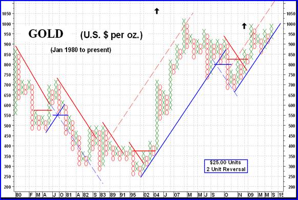 About the only negative is the fact that the price of gold is at its highest value in almost 18 months while the momentum indicator has not yet breached its previous high from this past Feb. The momentum indicator seems to be suggesting that this latest move on the part of gold does not have the strength of previous moves and one should be on guard for a reversal, JUST IN CASE....