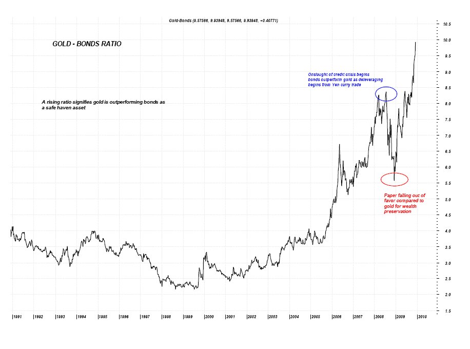 "...The following is one of the more important charts I will post this week. It details the Gold/Bond ratio which is basically a comparison of the TWO generally regarded “SAFE HAVEN” assets – Gold and US Treasury Bonds...."
