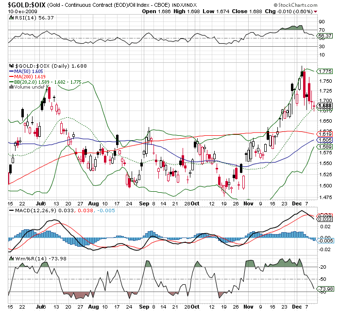 Ein besonderes Verhältnis. Oft gerät Öl stark unter Druck und beeinflußt als führender Rohstoffwert auch Gold als "Rohstoff".