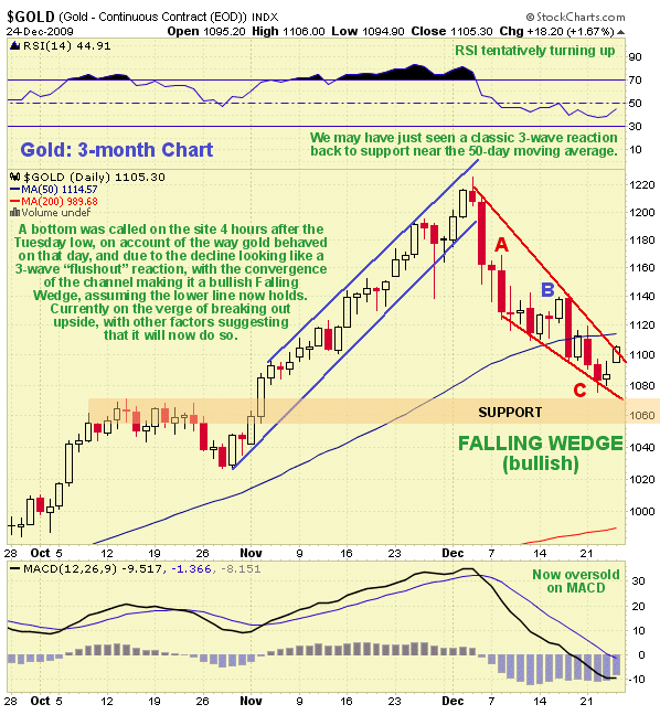 So here we are at the end of 2009, and the gold market faces the exact same situation as it did in the summer of 1970. Gold has broken out above a flat line and moved into new all-time high ground. Then it has started to pull back. We know what will happen. (The followers of) Adam Smith will win. (The followers of) Thomas Aquinas will lose. It’s been happening that way for a long, long time.