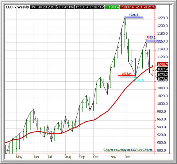For the time being, rallies in gold look to be a short sale opportunity unless and until April Gold takes out $1105. Resistance is at $1101.50 and the Daily Chart at this time looks oversold. Keep in mind that oversold conditions can turn into embedded situations that embolden downtrends...."http://news.goldseek.com/GoldSeek/1264715607.php