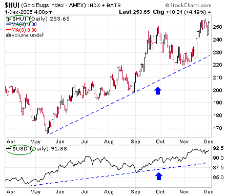 Auch seeehr interessant der HUI , der sich vom $ etwas löst.