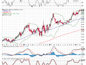 (.....) Bollinger-Band zieht zu, MACD zeigt wieder mal eine Delle, grundsätzlich aber aufwärts, Slow Stochastic muss noch was runter........