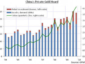 Today, the World Gold Council issued a report predicting that Chinese gold-demand would double over the next ten years. There is nothing particularly surprising in this news. Indeed, I consider this an extremely conservative prediction. I would expect China's gold-demand to double in no more than half that amount of time.