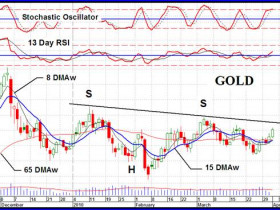 "...Gold in US dollars is testing resistance at the top of a pennant formation, and the positive divergence between it and the GCI suggests that a breakout is likely...."