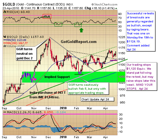 "...Gold took an honest (or dishonest? ) shot at giving the gold bears a failed breakout on Monday following the SEC v Goldman news, but there, and each time gold attempted a run into the $1,130s thereafter the yellow metal met with determined bidding. We can believe that technically minded traders all noticed the support which formed there in the $1,130s. Moving on from here we will mark the high $1,120s as potential support with potential resistance well above in the $1,160s – until proven otherwise on both counts. ...
