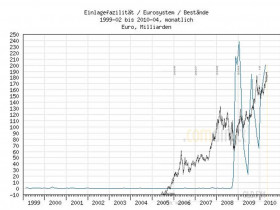 Ich habe mal den Chart mit der Einlagefazilität der EZB und den Goldchart in Dollar übereinander gelegt.