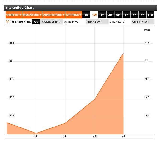 ein blick auf den wochenchart bei den 2jährigen griechischen Bonds zeigt, dass sich heute die flucht aus unsicheren Anlageformen beschleunigt hat.