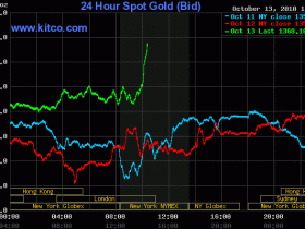 Genau so sieht es auch Jim Sinclair. Er wünscht sich, dass Leute wie dieser ehemalige Fed-Funktionär mindestens einmal pro Woche einen solchen Artikel in der Finacial Times absondern, denn dann erfolge der Goldanstieg nur noch rascher. Der heutige Tag, zumal bis zum jetzigen Zeitpunkt, passt jedenfalls prächtig zu dieser Ansicht: