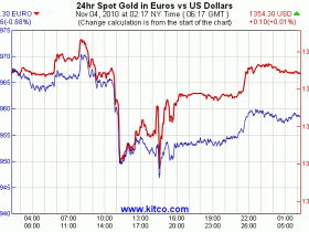 Und obwohl die eigentlich immer fast minutengenau(!) ihre Preise gemäß Papier-POG festlegen: den Einbruch gegen 16:30 h MEZ haben die - OBWOHL die anschließende Aufwärtszacke noch nicht "wirklich" klar war (es HÄTTE auch weiter südwärts gehen können, in die Region um 1320,- $, und ich hatte es sogar so gehofft...) - gleich gar nicht voll abgebildet, sondern den phys. Preis statt um 15,- € (wie's der Papierkurs "eigentlich" hergegeben hätte) nur um ganze 9,- Brüss€lettis gesenkt. Lächerlich! Damit war deren Ankauf(!) z.T. 5,- und mehr € über Spot... Eben: nix mehr da für Kaufwillige...