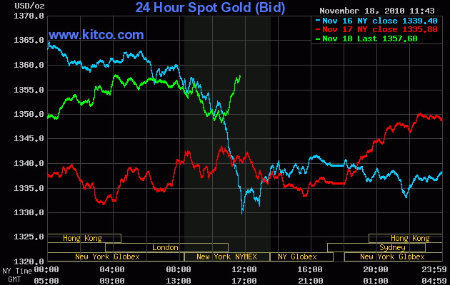 China’s gold market may double in the next decade as retail investment and jewelry demand gain, the council’s Wang said Nov. 3. Demand may gain to 800 tons to 900 tons in the next ten years, Wang said…..”