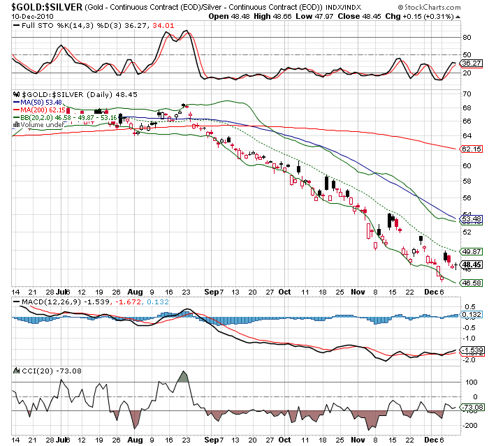 .“The gold-silver ratio reached an important support at 47.5/46,” said Stephanie Aymes, a cross-commodity technical analyst with Societe Generale in London. “Gold will outperform silver to 56/58.”…”