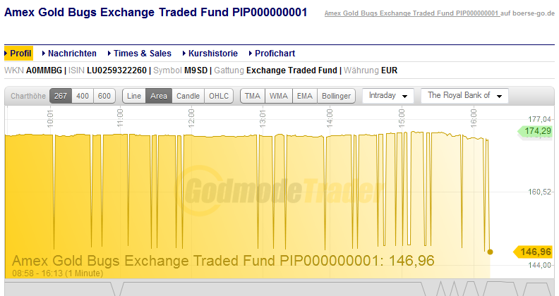 Hier mal der richtige, echte HUI, 2 Tage, minütlich. Da sieht man die Bewegungen im % Bereich...