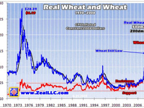 Jupp, das Gold ist stärker gestiegen als der Weizen. Anbei noch zwei längere Weizen-Charts (1970-2008 nominal und real und ab 1657 real). Das jeweilige Gold-Ratio dazu habe ich leider nicht.