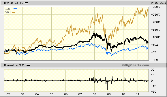 Aus einem Artikel im Net gefischt und gesichert, den ich momentan nicht wieder finde....Überragend die Performance des Goldes und wie erstaunlich mickrig die hochgepriesene Buffett Aktie Berkshire !!