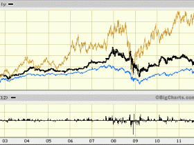 Könnte ein inflabereinigter Chart sein, entscheidend allein ist doch hier der Vergleich und das Performanceverhältnis !Ergänzend ein vergleichender 10 JahresChart Berkshire : Dow : XAU. Auch hier hat der Mineninvestor deutlich besser gelegen, mit sehr starker Vola, aber das ist ja nicht neu.