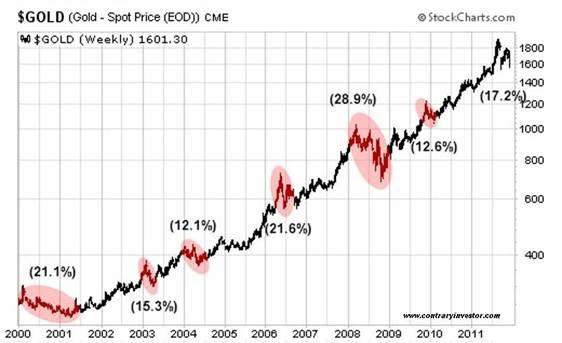 „See the following chart which shows previous periods of total panic among the gold guys.