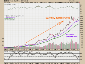 Wobei man anmerken muß, dass der Goldpreis sich zumindest in der ersten Phase mit teils zweistelligen Inflationsraten in den USA (1972-1979) eher moderat bewegt hat. Und das trotz erheblichem "Nachholbedarf" in Folge der 1971 entfallenen Dollar-Gold-Bindung. Erst als sich Ende der 70er die weltweite Rezession abzuzeichnen begann und der Russe in Afghanistan einmarschierte ging Gold steil.