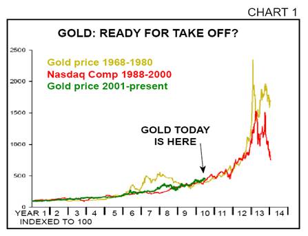 ...Gold isn’t in a bear market, it’s [just] been in a consolidation since the top of September 2011. If you pull up a 13-year chart, it shows that gold is not in a bear market, not even close. The miners however, are in bear market, and they have been for 19 months now, and they’ve lost 50%. That’s about an average cyclical bear market…[So] I think the miners are [primed] to bottom along with gold at this yearly cycle low, which I don’t think occurred today, but I think we’re within a day or two of that final bottom...