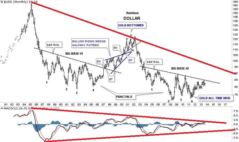 .... der Autor des von Dir gezeigten Charts, sieht selbigen aber nicht gerade als 'Kronzeuge' für den weiteren Niedergang des Dollars, sondern in etwa im Gegenteil, erwartet er ein weiteres 'Erstarken' des Dollars , insbesondere gegen Gold.